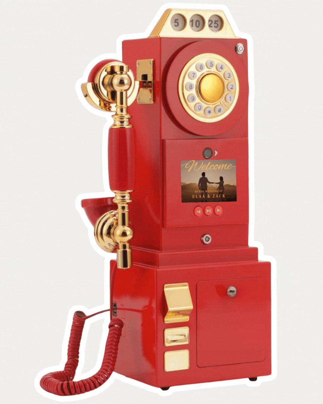 Styled like a nostalgic payphone, our guestbook captures heartfelt video messages from your guests in stunning HD. You can relive the laughter, love, and happy tears for years to come.